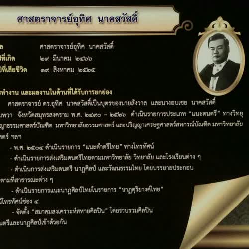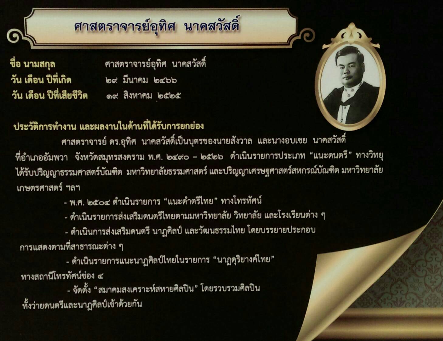 | คำสำคัญ : มหาวิทยาลัยมหิดล, ดนตรีไทย, นาฏดุริยางค์ไทย, นาฏศิลป์, ศิลปวัฒนธรรมไทย, ประวัติ, ศาสตราจารย์ ดร.อุทิศ นาคสวัสดิ์ |