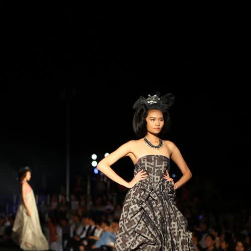 | คำอธิบาย : ตัวอย่างภาพการเดินแฟชั่นโชว์เครื่องแต่งกายที่ออกแบบและตัดเย็บจากผ้าไหมของไทยที่ได้รับการยอมรับในคุณภาพและความสวยงามระดับนานาชาติ |