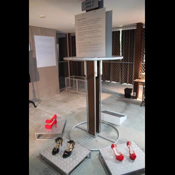 | คำอธิบาย : ภาพบรรยากาศภายในนิทรรศการชั่วคราว เรื่อง ไฉไลไปไหน มุมกิจกรรมให้ผู้เข้าชมมีประสบการณ์ทดลองสวมรองเท้าส้นสูง ซึ่งในอดีตเป็นแฟชั่นผู้ชายสวมใส่กันในกลุ่มขุนนางยุโรปเพื่อแสดงถึงสถานะและศักดินา แต่ปัจจุบันรองเท้าส้นสูงเป็นแฟชั่นที่ช่วยเสริมบุคคลิกสำหรับผู้หญิงในให้ดูสวยสง่า เดินเฉิดฉายด้วยความมั่นใจ |
