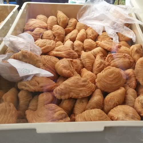 | คำอธิบาย : กะหรี่ปั๊บ เป็นขนมทอด แผ้งกรอบ แต่เดิมที่นิยมรับประทานคือไส้ไก่ ปัจจุบันประยุกต์เป็นไส้ผลไม้ เช่น ไส้เผือก ไส้สับปะรด |