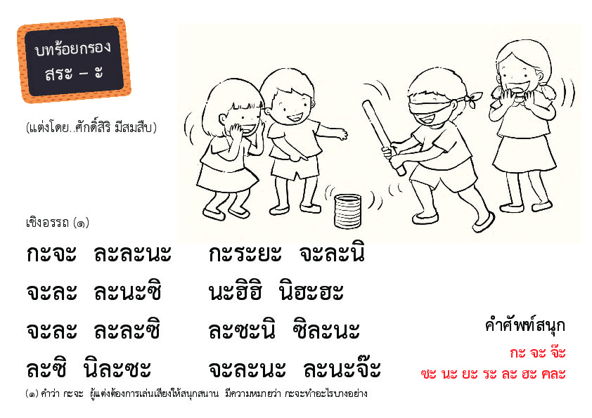 | คำสำคัญ : ภาษาไทย, บทร้อยกรองสระอะ, สระไทย, สระ-ะ, บทเรียนสระ-ะ |