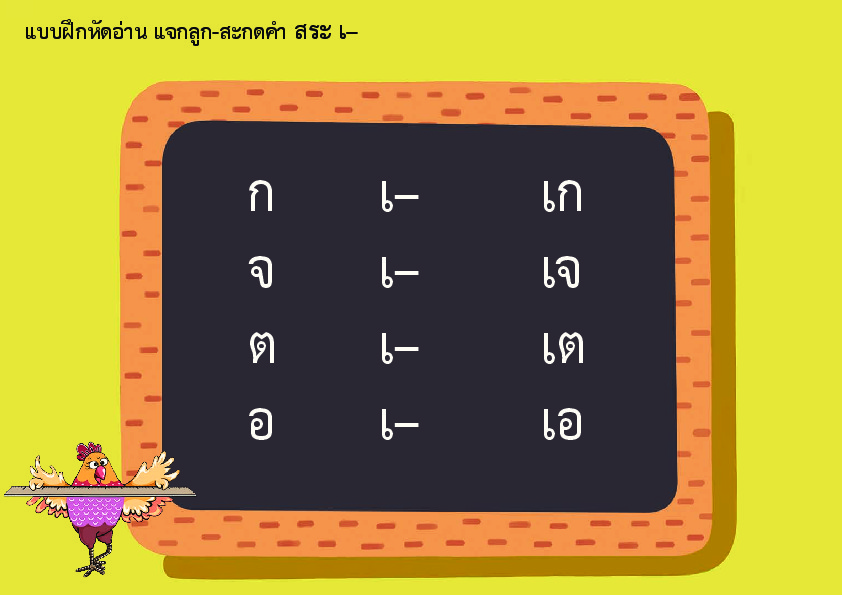 | คำสำคัญ : แบบฝึกหัดอ่าน แจกลูก-สะกดคำ, สระไทย, ภาษาไทย, บทเรียนสระเ-, สระเ- |