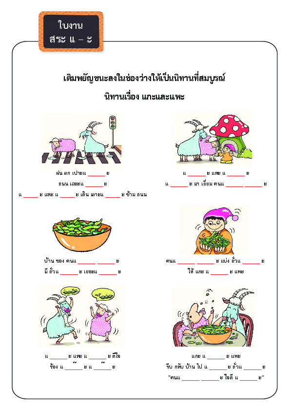 | ชื่อเรื่อง : ใบงานสระ แ-ะ |