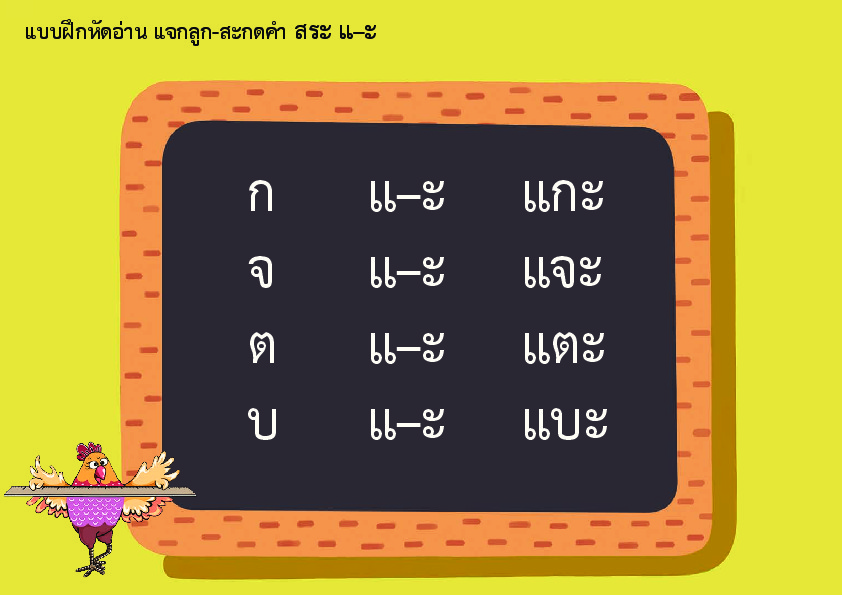 | คำสำคัญ : แบบฝึกหัดอ่าน แจกลูก-สะกดคำ สระ แ-ะ, สระไทย, เรียนเขียนสระแ-ะ, ภาษาไทย, บทเรียนสระแ-ะ |
