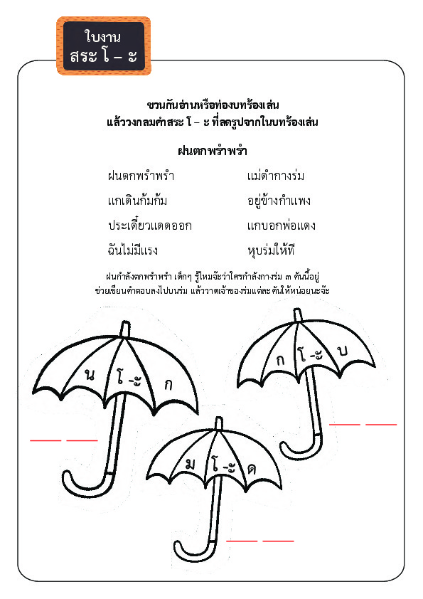 | ชื่อเรื่อง : ใบงานสระโอะ |