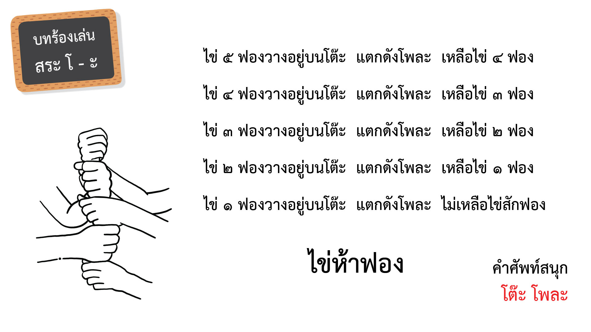 | คำสำคัญ : บทร้องเล่นสระ โ-ะ ไข่ห้าฟอง |