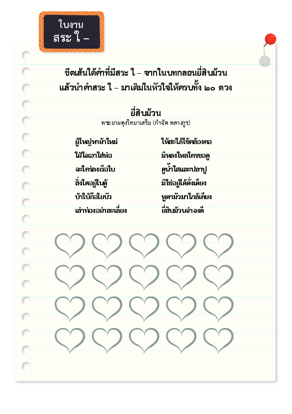 ใบงาน สระใ- ได้รับใบอนุญาตภายใต้ ให้เผยแพร่-โดยต้องระบุที่มาแต่ห้ามดัดแปลงและห้ามใช้เพื่อการค้า 3.0 Thailand.
