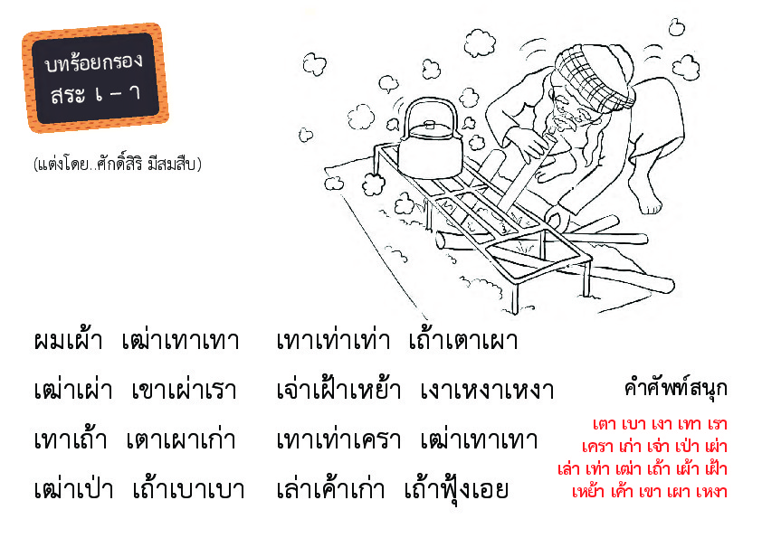 บทร้อยกรอง สระเ-า ได้รับใบอนุญาตภายใต้ ให้เผยแพร่-โดยต้องระบุที่มาแต่ห้ามดัดแปลงและห้ามใช้เพื่อการค้า 3.0 Thailand.