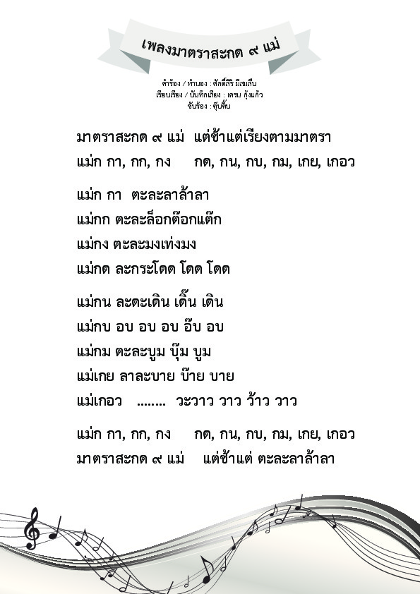 | ชื่อเรื่อง : เนื้อเพลง มาตราสะกด ๙ แม่ |