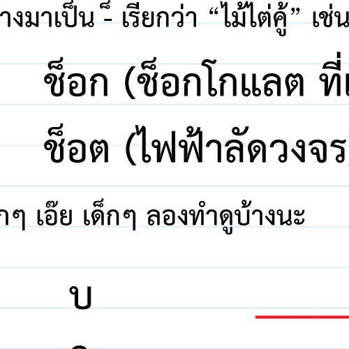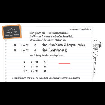 คำสำคัญ : ภาษาไทย, บทเรียนจากเจ้าเงาะ, เรียนเขียนสระเ-าะ, บทเรียนสระเ-าะ, สระไทย |