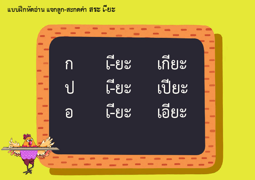| คำสำคัญ : แบบฝึกหัดอ่าน แจกลูก-สะกดคำ สระเ-ียะ, เรียนเขียนสระเ-ียะ, ภาษาไทย, บทเรียนสระเ-ียะ, สระไทย |