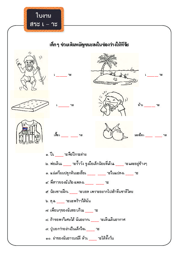 | ชื่อเรื่อง : ใบงานสระ เ-าะ |