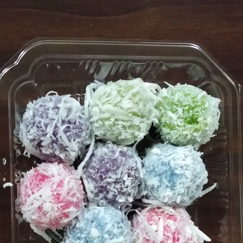 | คำอธิบาย : ขนมต้ม ไส้ขนมทำด้วยมะพร้าวกวนกับน้ำตาลให้เหนียวพอปั้นได้ ห่อด้วยแป้ง นำไปต้ม เมื่อสุก นำมาคลุกกับมะพร้าวขูด เป็นขนมมงคล |