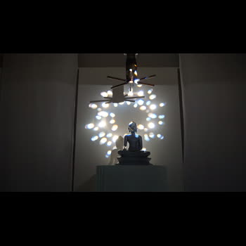 | คำอธิบาย : ภาพบรรยากาศภายในนิทรรศการชั่วคราว เรื่อง ไทยทำ ทำทำไม แสดงภาพจำลองการทำงานของกงพัด หรืออุปกรณ์สำหรับใช้สรงน้ำพระ ตามความเชื่อพราหมณ์ถือว่าน้ำถือเป็นสัญลักษณ์ของความสะอาดและความบริสุทธิ์ สื่อถึงความเคารพนบนอบ การชำระฝุ่นผงบนเนื้อพระพุทธรูป เปรียบเสมือนการเตือนใจเราให้หมั่นชำระผงฝุ่นในใจให้เบาบางลง |