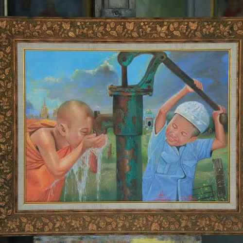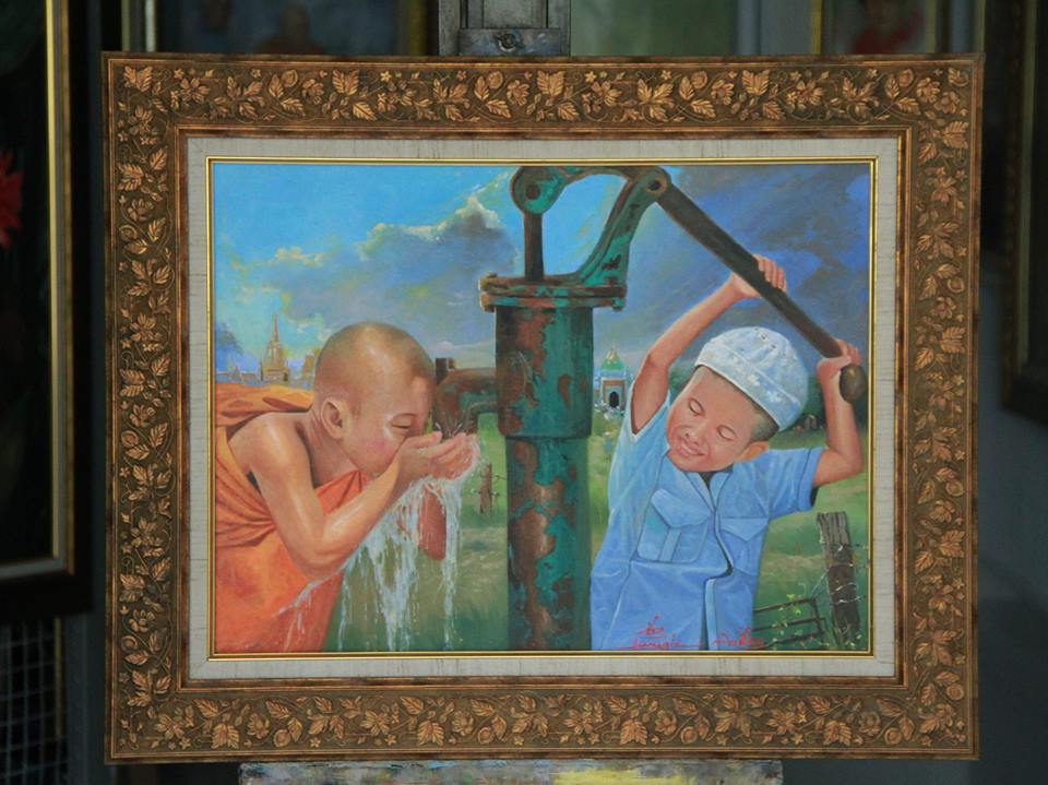 | คำอธิบาย : สันติภาพที่ไม่แบ่งแยก ภาพวาดสีน้ำมันบนผ้าแคนวาส ขนาด 65x80 cm |