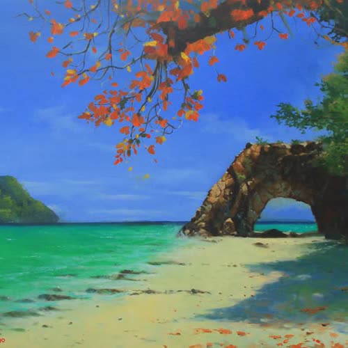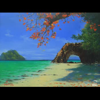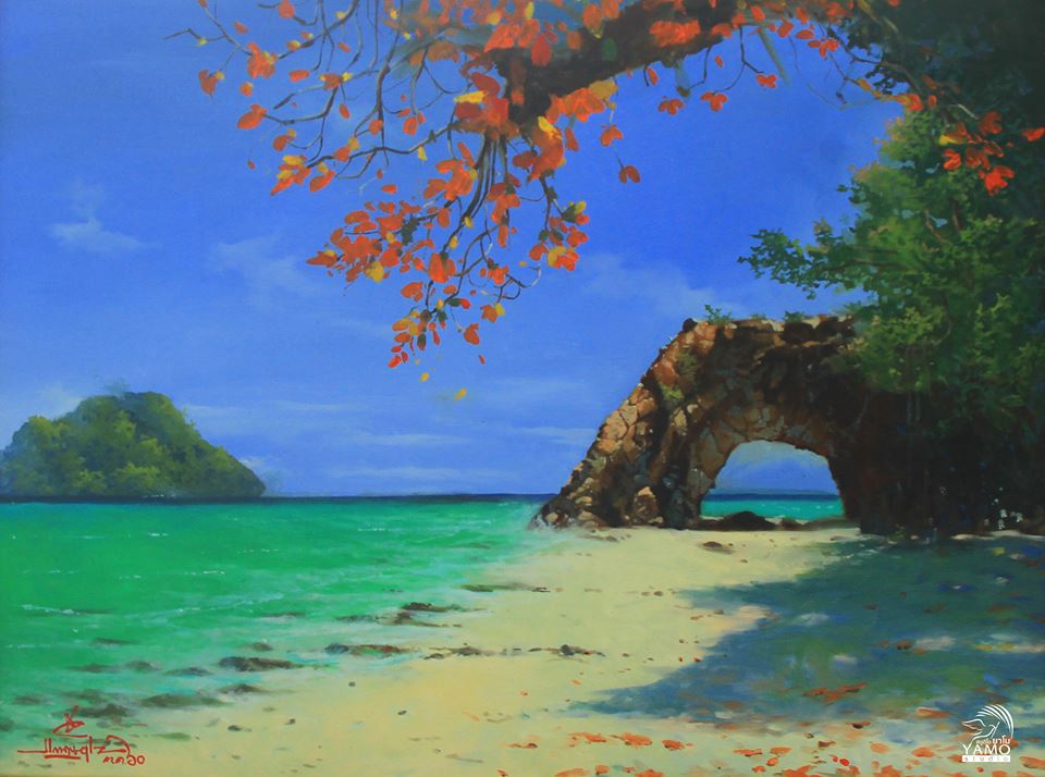 | คำอธิบาย : ผ่อนคลายด้วยน้ำทะเล เกาะไข่ สตูล ขนาด 46x61 cm เทคนิค สีน้ำมันบนผ้าแคนวาส |