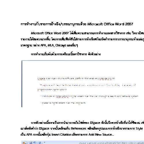 | คำอธิบาย : เอกสารแนะนำการทำงานกับรายการอ้างอิง/บรรณานุกรมด้วย Microsoft Office Word 2007 |