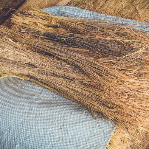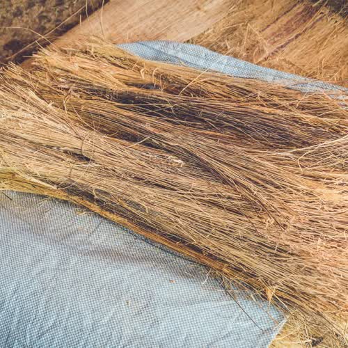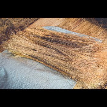 คำอธิบาย : ไยตาลที่ได้จากการตีแล้วแกะออกมา เพื่อรอไปทำไม้กวาด |