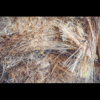 | คำอธิบาย : ใยตาลที่ได้จากการตี ซึ่งจะนำไปทำไม้กวาด |