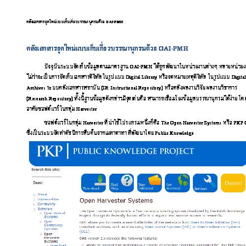 | คำอธิบาย : เอกสารแนะนำการพัฒนาคลังเอกสารยุคใหม่แบบเก็บเกี่ยวบรรณานุกรมด้วย OAI-PMH |