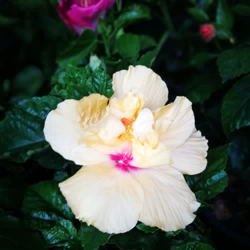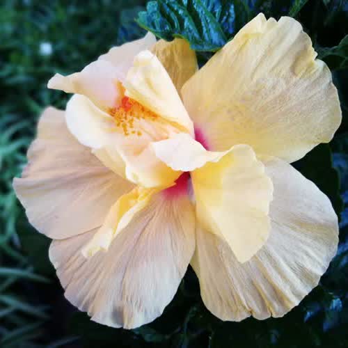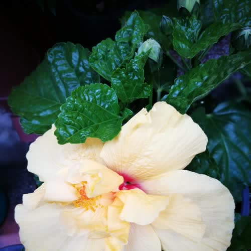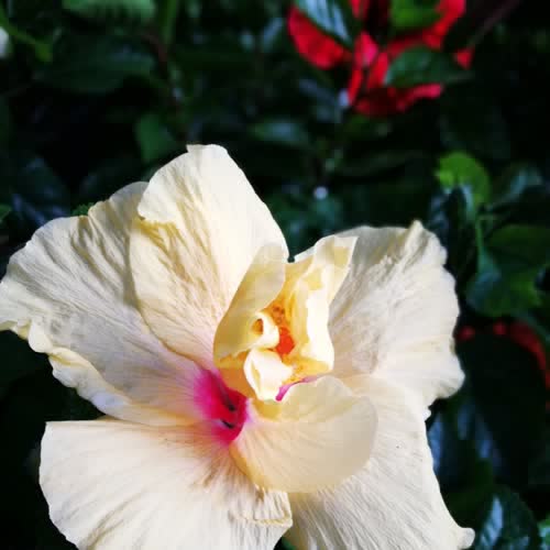 | คำอธิบาย : ชบาซ้อน สีเหลืองอ่อนๆ ออกจะขาวด้วย |