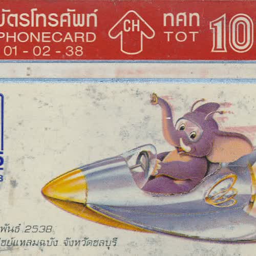 คำอธิบาย : ๑๗-๒๖ กุมภาพันธุ์ ๒๕๓๘ ณ ท่าเรือพาณิชย์แหลมฉบัง จังหวัดชลบุรี องค์การโทรศัพท์แห่งประเทศไทย ได้ออกบัตรโทรศัพท์ที่ใช้กับเครื่องโทรศัพท์สาธารณะ ภายใต้เงื่อนไขและข้อกำหนดขององค์การโทรศัพท์ฯ โดยระบุจำนวนเงินและวันหมดอายุไว้ ภาพที่หน้าบัตรแสดงตามวาระสำคัญ สถานที่ สัตว์ ขนม ผลไม้ |