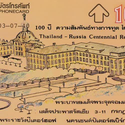 บัตรโทรศัพท์ ๑๐๐ ปี ความสัมพันธ์ทางการฑูต ไทย-รัสเซีย ได้รับใบอนุญาตภายใต้ ให้เผยแพร่-โดยต้องระบุที่มาแต่ห้ามดัดแปลงและห้ามใช้เพื่อการค้า 3.0 Thailand.