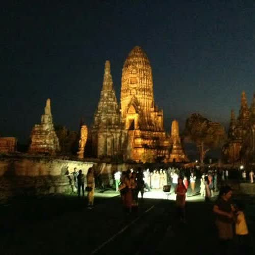"วัดไชยวัฒนาราม ยามค่ำ".
