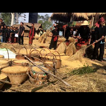| คำอธิบาย : พิธีสู่ขวัญข้าว พิธีกรรมหนึ่งในประเพณีหวัวบุญเบิกฟ้า ขึ้น 3 ค่ำ มหัศจรรย์เดือน 3 ของชุมชนชาวกูยบ้านกู่ อ.ปรางค์กู่ จ.ศรีสะเกษ เพื่อแสดงความกตัญญูต่อพระแม่โพสพ เพื่อความสบายใจในการซื้อขายข้าว และเพื่อให้การแบ่งปันข้าวแก่ญาติมิตรผู้มาร่วมพิธี |