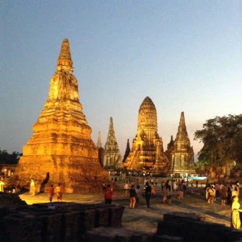 "วัดไชยวัฒนาราม ยามค่ำ".