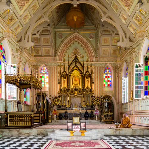 | คำอธิบาย : The Gothic Style Interior Decoration of Wat Niwet Thammaprawat, Bang Pa-In, Ayutthaya, Thailand วัดนิเวศธรรมประวัติราชวรวิหาร บางปะอิน พระนครศรีอยุธยา |
