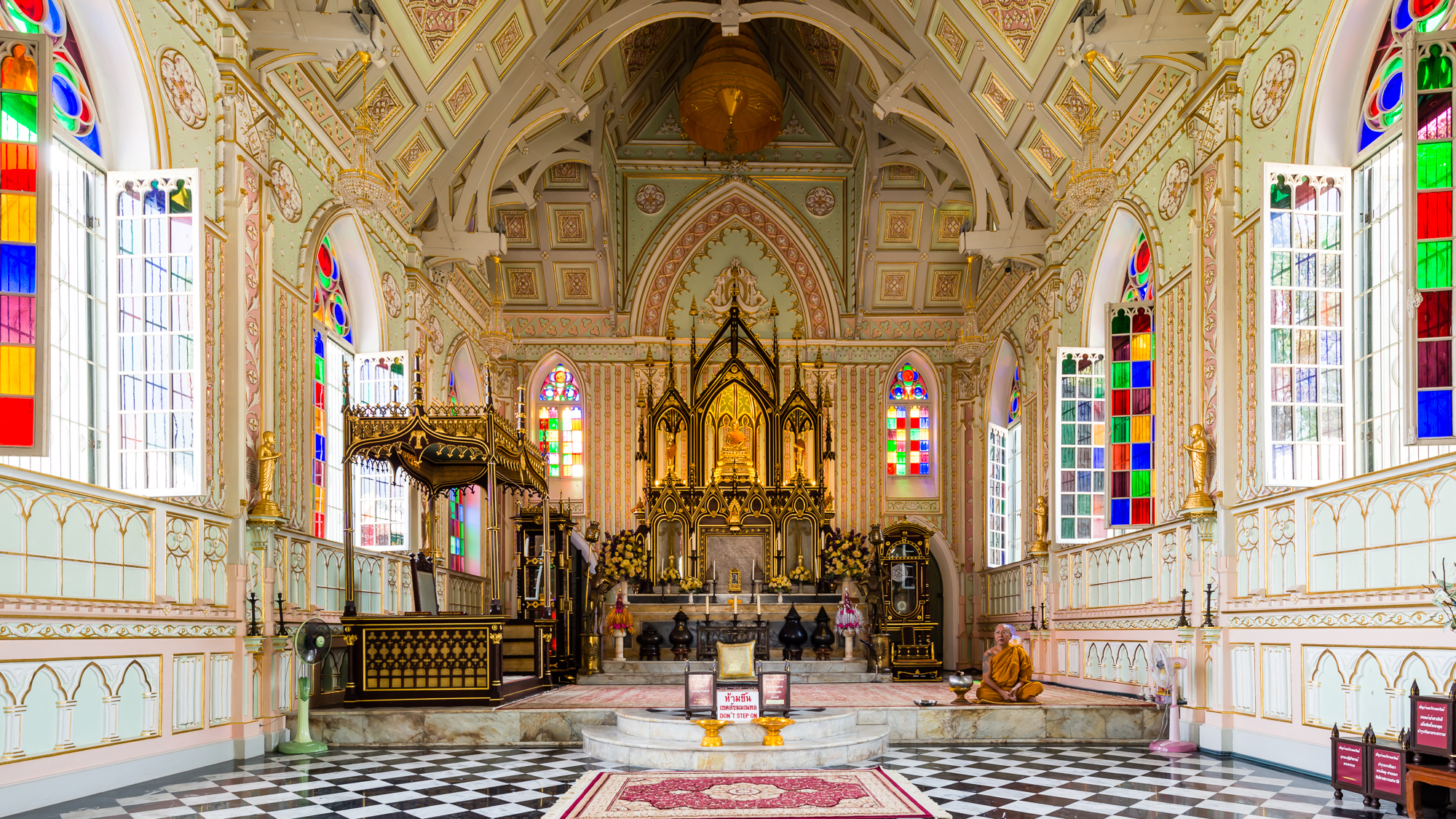 คำอธิบาย : The Gothic Style Interior Decoration of Wat Niwet Thammaprawat, Bang Pa-In, Ayutthaya, Thailand วัดนิเวศธรรมประวัติราชวรวิหาร บางปะอิน พระนครศรีอยุธยา |