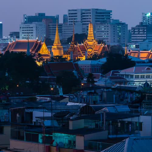 | คำอธิบาย : Twilight at Wat Phra Kaew (Wat Phra Si Rattana Satsadaram or Temple of the Emerald Buddha), Grand Palace and the Old Area of Bangkok, view from the Old Siam Plaza วัดพระแก้ว (วัดพระศรีรัตนศาสดาราม) พระบรมมหาราชวัง |
