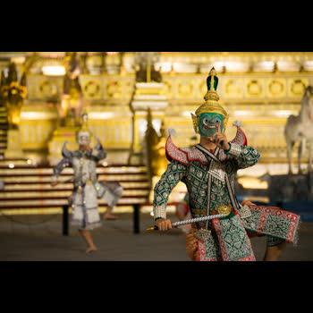 | คำอธิบาย : โขนเรื่องรามเกียรติ์ มหรสพสมโภชออกพระเมรุ 09.12.2560 พระรามข้ามสมุทร-ยกรบ-รำสำนึกในพระมหากรุณาธิคุณ The khon masked drama was performed in front of Phra Thinang Songtham, or the Royal Merit-Making Pavilion, the Royal Crematorium for His Majesty King Bhumibol Adulyadej. |