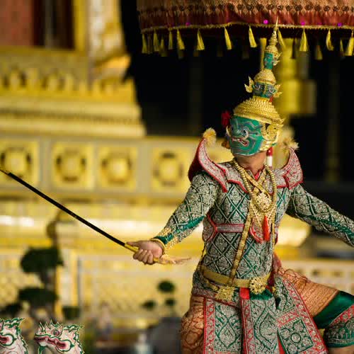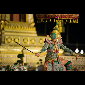 | คำสำคัญ : ราวณะ, Khon, มหรสพ, Tosakan, มหรสพสมโภช, รามเกียรติ์, Rama, King Rama IX, Royal Crematorium, Demon, Lakshmana, โขน, Ravana, ทศกัณฐ์, Ramayana |