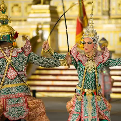 | คำสำคัญ : Rama, ทศกัณฐ์, King Rama IX, Tosakan, มหรสพสมโภช, รามเกียรติ์, มหรสพ, Demon, Royal Crematorium, พระราม, Lakshmana, พระลักษมณ์, หนุมาน, โขน, Ravana, Khon, Ramayana |