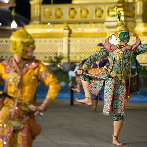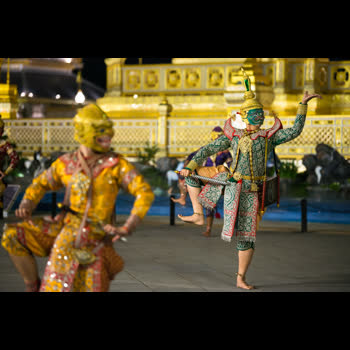 | คำสำคัญ : King Rama IX, รามเกียรติ์, Ramayana, Royal Crematoriu, Khon, มหรสพสมโภช, พิเภก, โขน, Royal Crematorium, มหรสพ, Rama, Lakshmana |