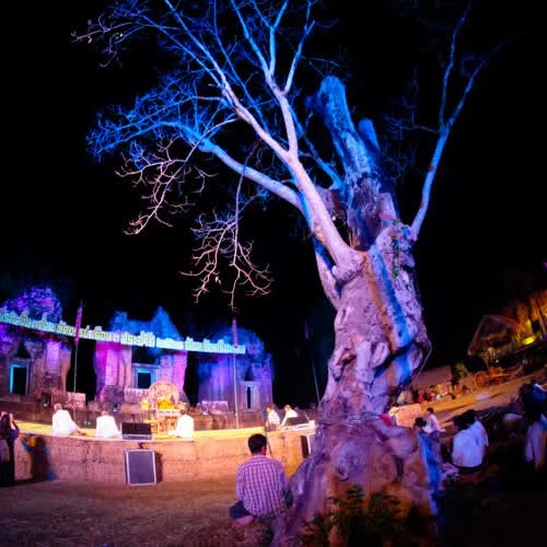 | คำอธิบาย : พระเทศน์เป็นภาษากูย ในคืนก่อนวันงานหวัวบุญเบิกฟ้า |