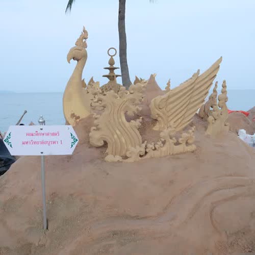| คำสำคัญ : ประเพณีก่อพระทรายวันไหลบางแสน, ชายหาดบางแสน, ประเพณีวันไหลบางแสน, เจดีย์ทราย |