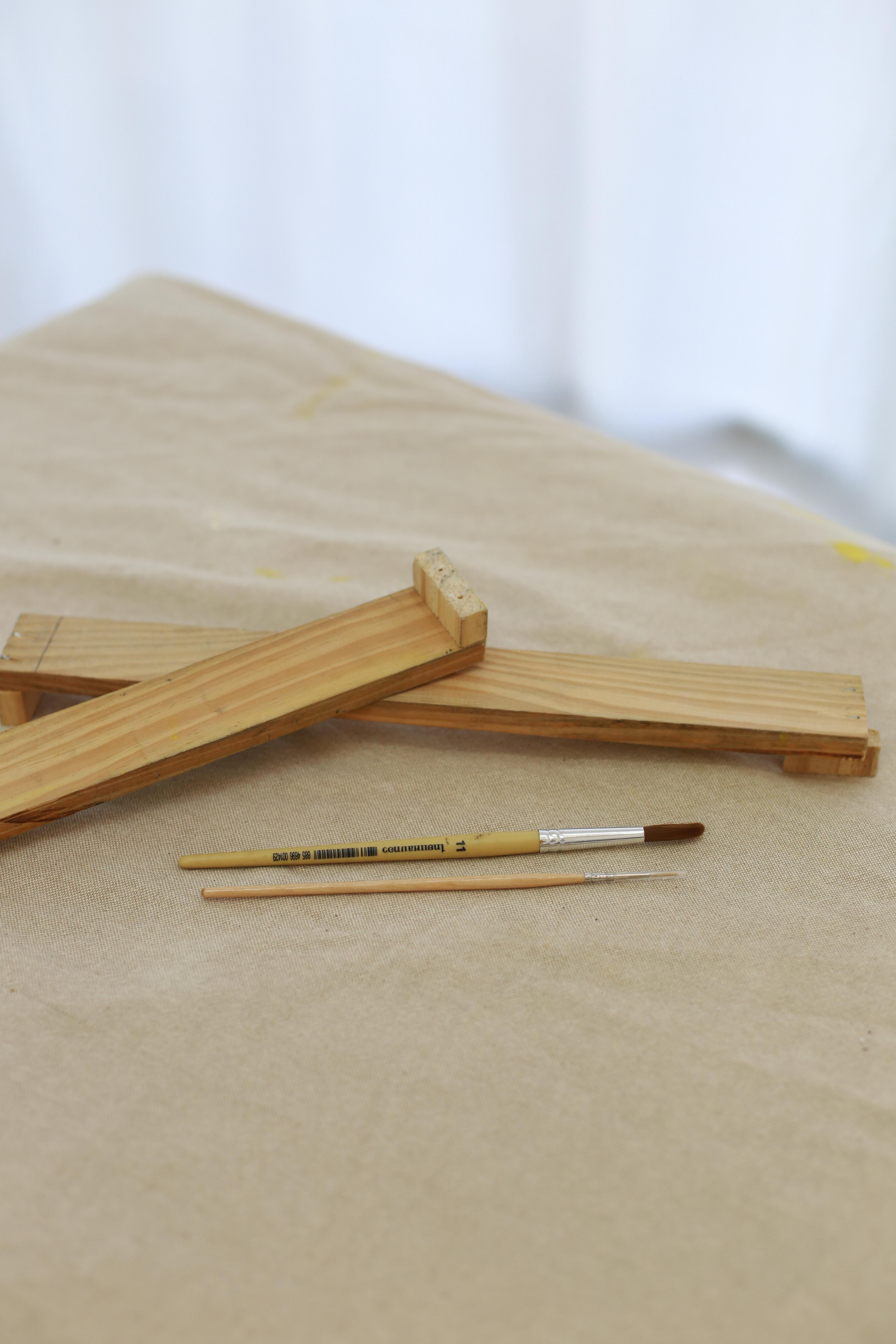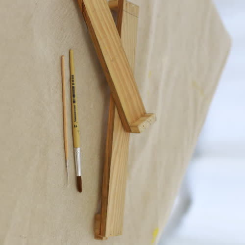 | คำอธิบาย : พู่กันเบอร์ใหญ่ขนนุ่ม และสะพานรองมือหรือไม้ค้ำดวง สะพานรองมือถือเป็นสิ่งสำคัญ |