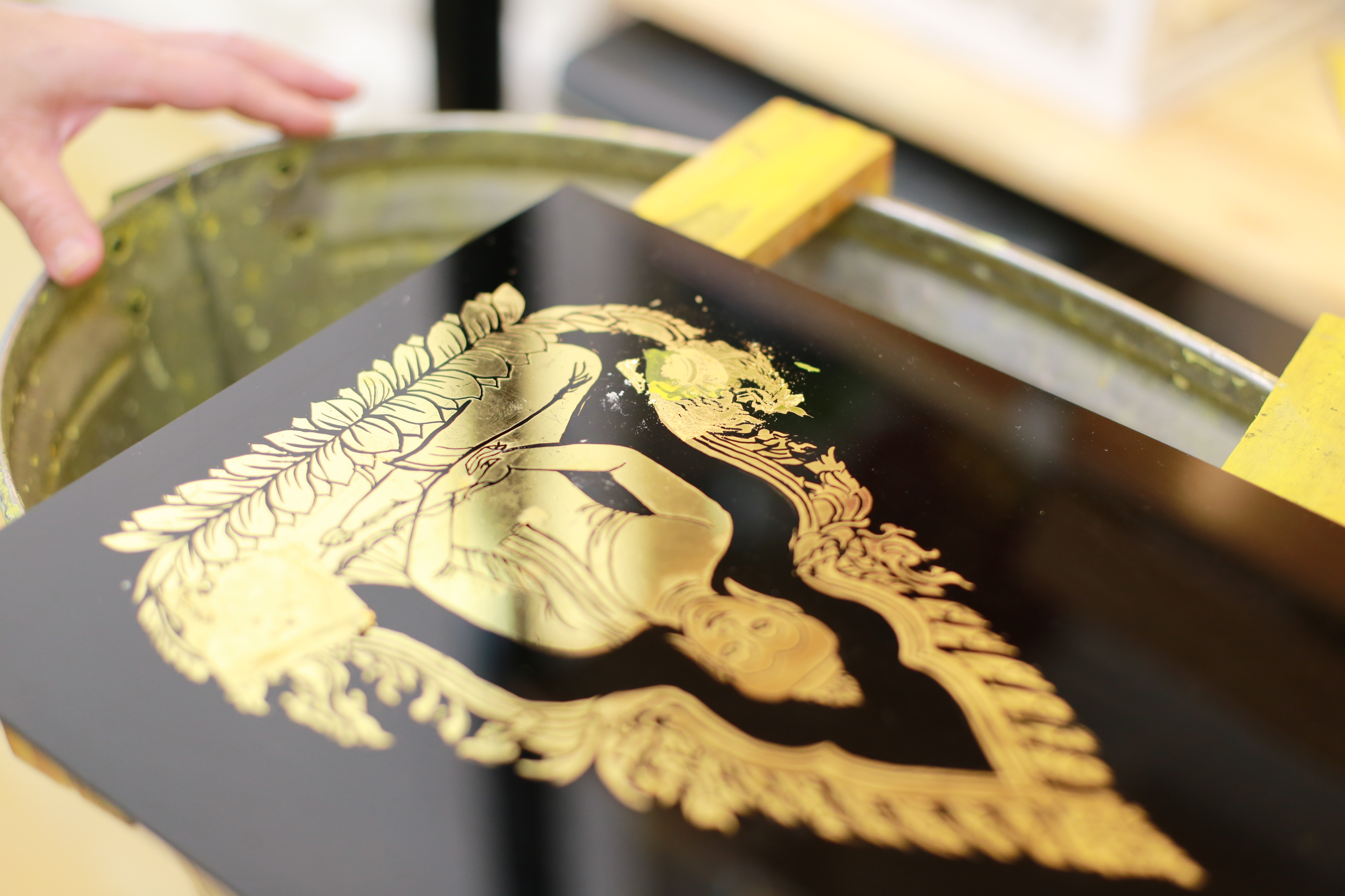 | คำอธิบาย : การปิดทองซ่อมเฉพาะจุดและรดน้ำออกอีกครั้ง |