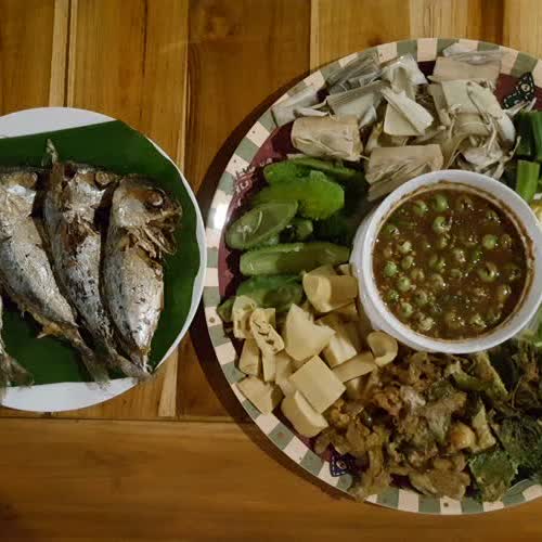 | คำอธิบาย : น้ำพริกปลาทู เป็นอาหารพื้นบ้านที่คนไทยรับประทานมาตั้งแต่สมัยโบราณ เป็นอาหารที่เป็นเอกลักษณ์ของคนไทย รับประทานกับข้าวสวย ผักสด หรือผักต้มราดน้ำกะทิ |
