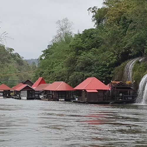 | คำอธิบาย : ล่องแพเล่นน้ำตกไทรโยคใหญ่ ชมธรรมชาติ ในวันหยุด จังหวัดกาญจนบุรี |