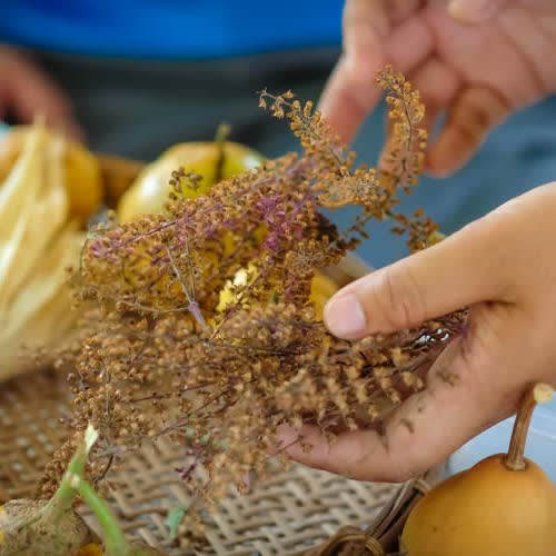 | คำอธิบาย : กระเพรา ต้องเก็บตอนเมล็ดแห้ง ที่แก่ เป็นสีน้ำตาลเข้ม |