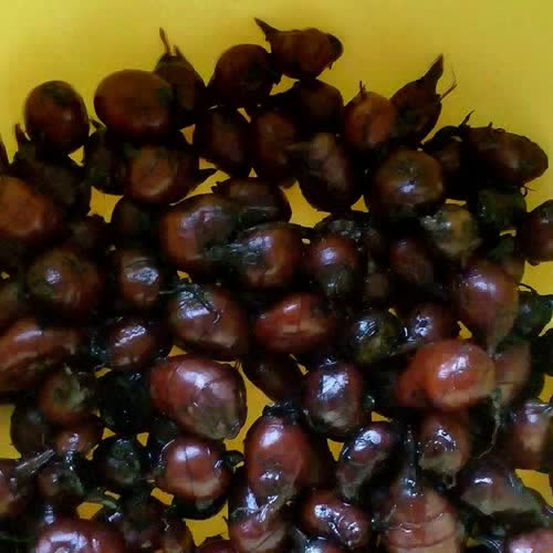 | คำอธิบาย : หัวแห้วหมู หรือ แห้วหมู พืชพันธ์ุพื้นเมืองตระกูลหญ้า จะพบได้ริมทะเลสาบบนคาบสมุทรสทิงพระ แห้วหมูมีขนาดเล็ก เนื้อแน่น รสชาดมันๆหวานๆ สมัยก่อนตอนสายๆ คนเลี้ยงหมูพันธุ์พื้นเมือง จะปล่อยให้หมูไปขุดคุ้ยกินแห้วชนิดนี้เป็นอาหาร ตอนเย็นจะต้อนหมูกลับมาเข้าคอกใต้ถุนบ้าน (บ้านเรือนจะมีใต้ถุนสูง เพราะป้องกันน้ำท่วมในฤดูฝน) แห้วชนิดนี้จึงได้ชื่อว่า \" หัวแห้วหมู \" |