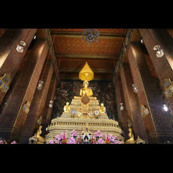| คำอธิบาย : พระพุทธเทวปฏิมากรเป็นพระประธานประดิษฐานในพระอุโบสถวัดพระเชตุพนวิมลมังคลารามราชวรมหาวิหาร พระบาทสมเด็จพระพุทธยอดฟ้าจุฬาโลกมหาราชโปรดเกล้าโปรดกระหม่อมให้อัญเชิญพระพุทธรูปองค์นี้มาจากวัดศาลาสี่หน้า ภายในอุณาโลมกลางผ้าทิพย์ที่ฐานพระพุทธรูปประดิษฐานพระบรมอัฐิ พระบาทสมเด็จพระพุทธยอดฟ้าจุฬาโลกมหาราชด้วย |
