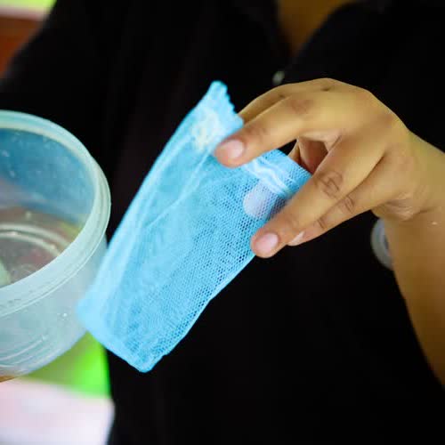 | คำอธิบาย : ใช้ถุงตาข่ายในการทำให้แห้ง |