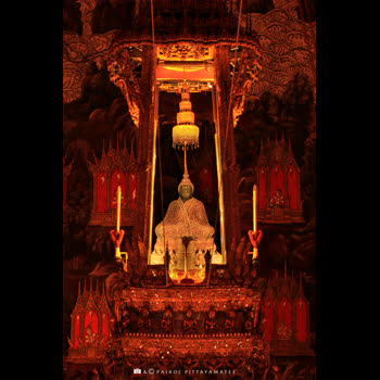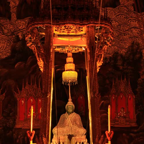 | คำอธิบาย : พระพุทธมหามณีรัตนปฏิมากร หรือ พระแก้วมรกต เป็นพระพุทธรูปคู่บ้านคู่เมืองของประเทศไทย ปัจจุบันประดิษฐานอยู่ในวัดพระศรีรัตนศาสดาราม ในพระบรมมหาราชวัง กรุงเทพมหานคร |