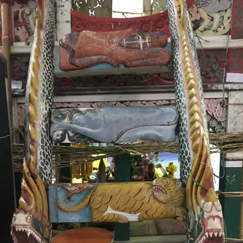 | คำอธิบาย : ธรรมมาสน์เทศน์บุญมหาชาติของชาวอีสาน วัดบ้านท่าม่วง อำเภอเสลภูมิ จังหวัดร้อยเอ็ด |