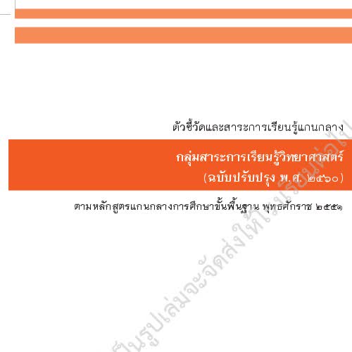 | คำอธิบาย : ตัวชี้วัดและสาระการเรียนรู้แกนกลาง กลุ่มสาระการเรียนรู้วิทยาศาสตร์ (ฉบับปรับปรุง พ.ศ. 2560) |